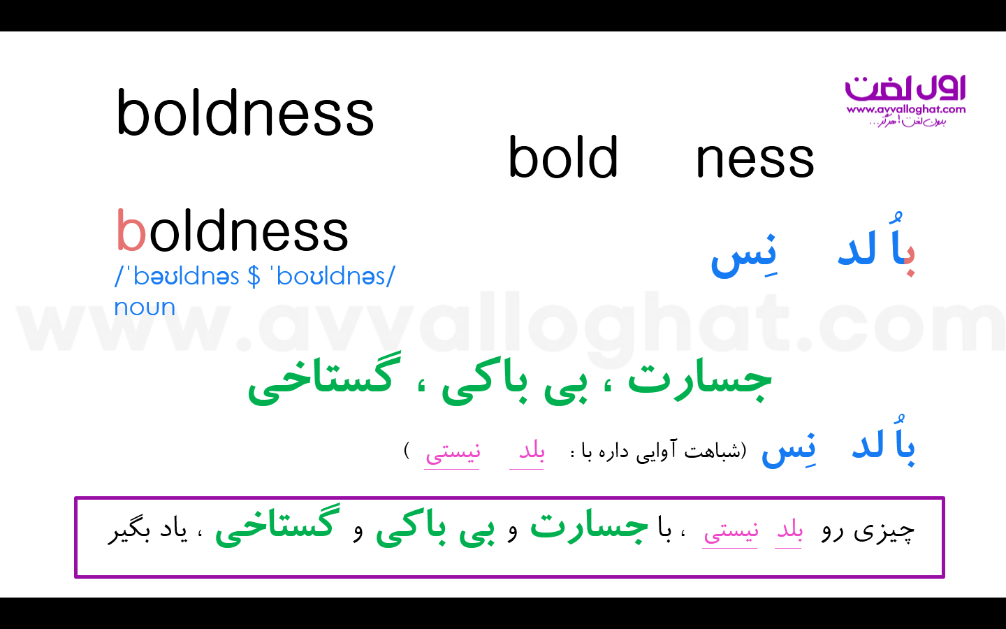 یادگیری آسون و لذتبخش لغت انگلیسی boldness در کمتر از یک دقیقه ، با ویدیوی ذیل :